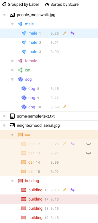- Select the labeled region, for example a span, bounding box, image segment, audio region, or other region, on the object or using the Regions sidebar.