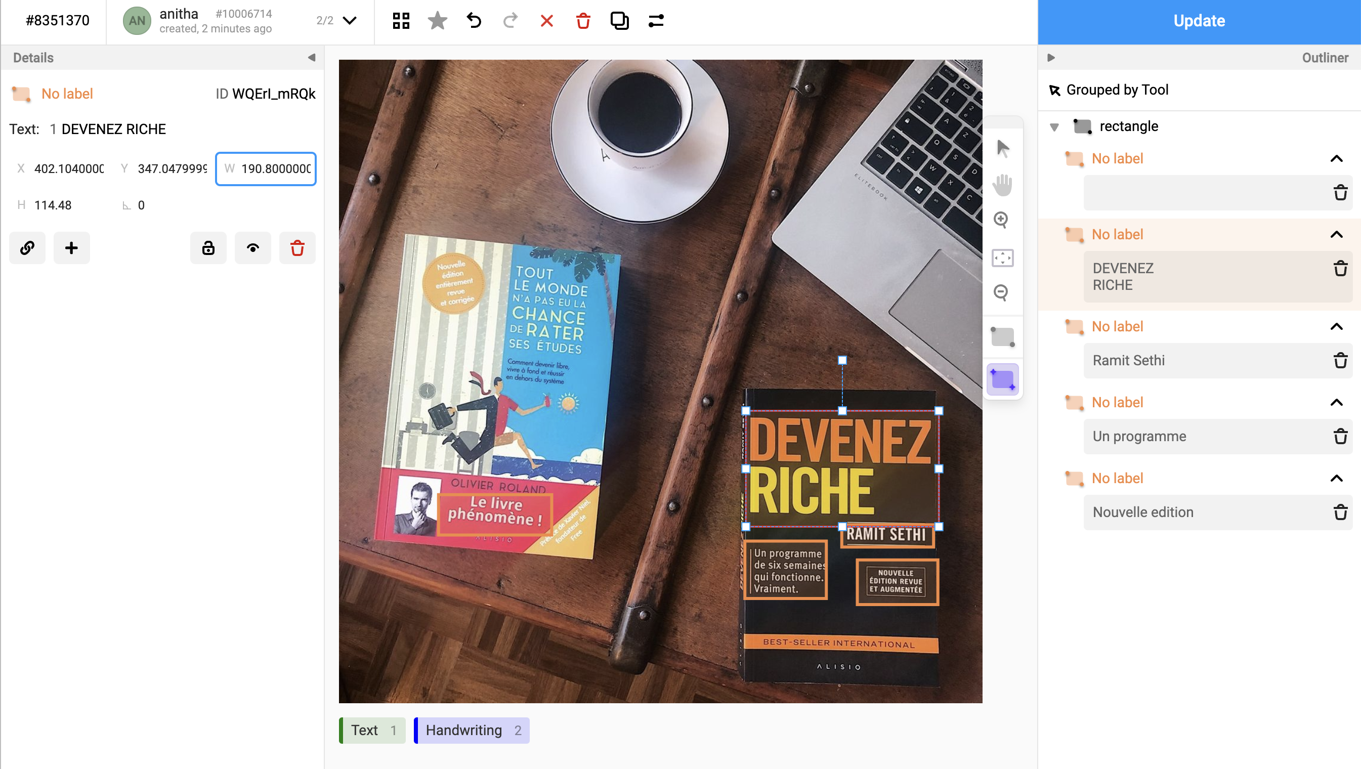You can edit regions with a focus on labeling. You can zoom in and precise control over the numbers and dimensions of each region attribute. The image region details like height, rotation, and so on can be changed using the inputs in the Details panel. Now, you can collapse all panels and get the maximum working area. This feature design makes some actions clear in the product user interface.