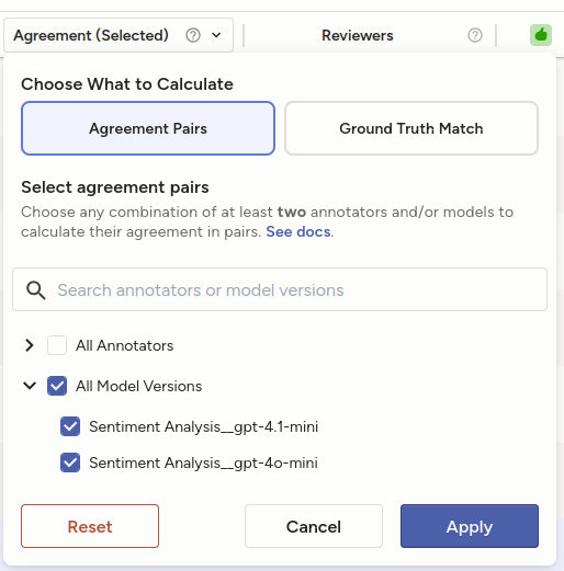 This allows you to select specific annotators and/or models to compare.